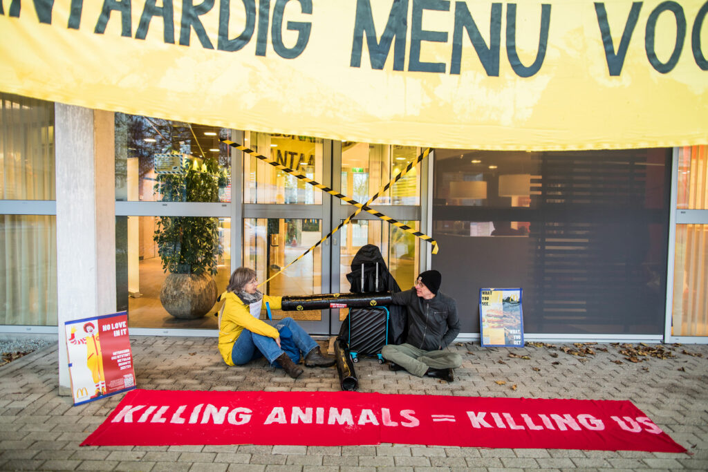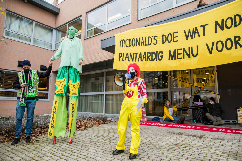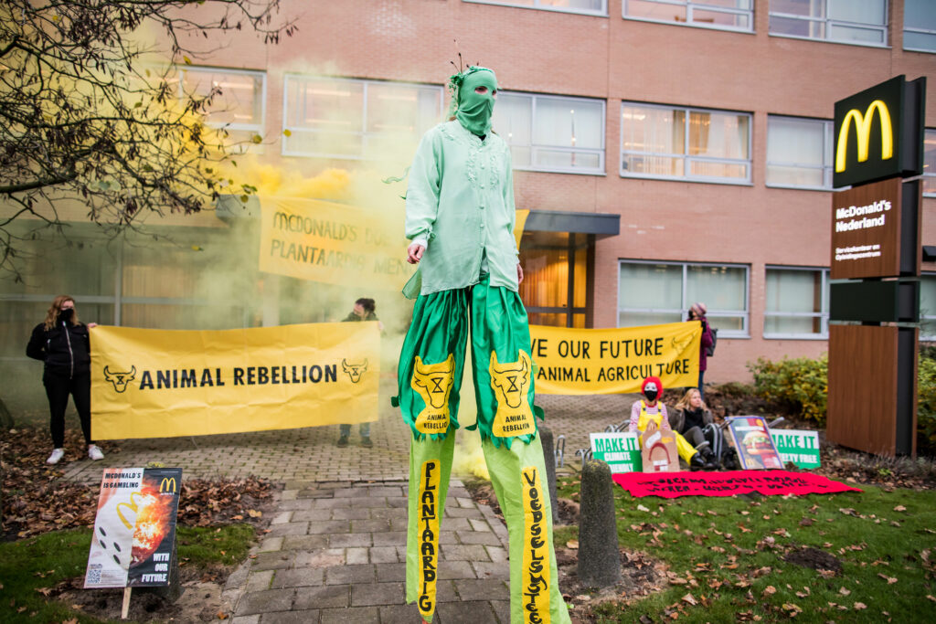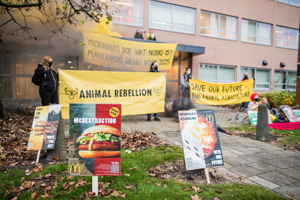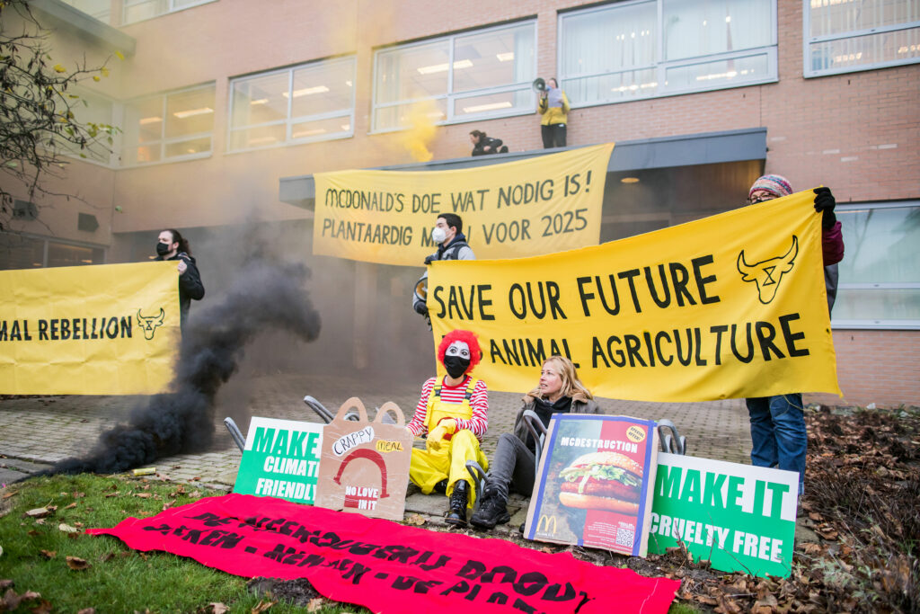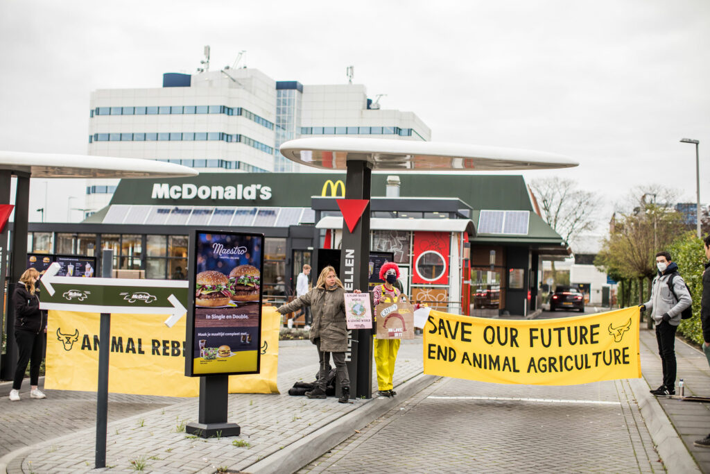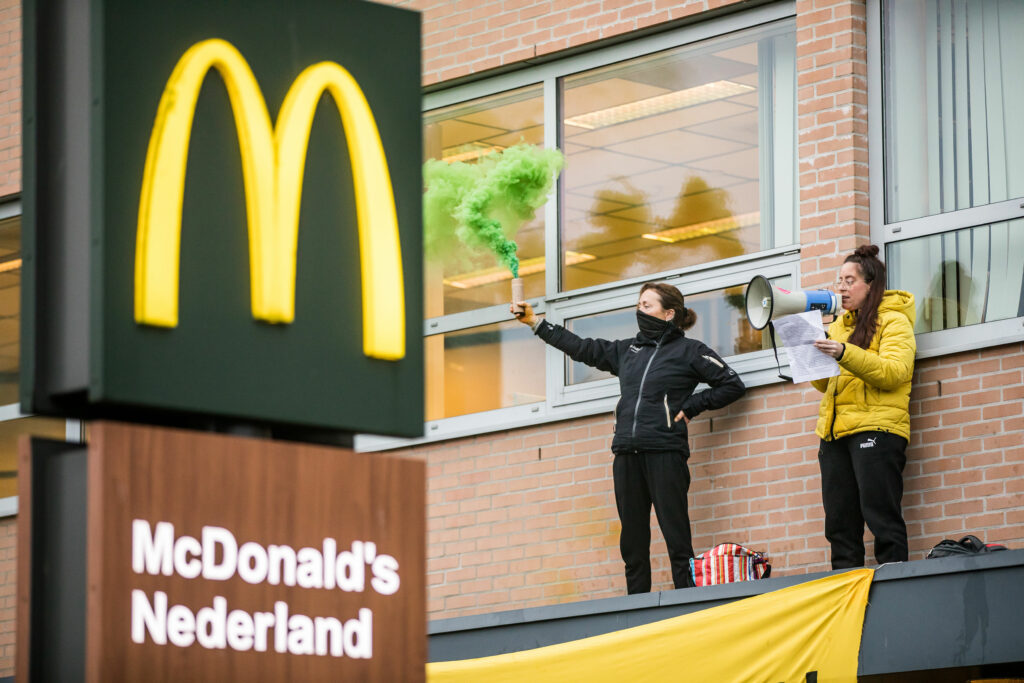 Ondanks de ernst van de ecologische en klimaatcrisis gaf McDonald’s geen gehoor aan ons protest bij het hoofdkantoor. Ze negeerden ons net zoals ze de wetenschappelijke feiten negeren.